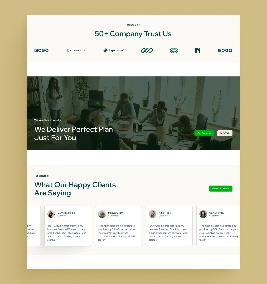 Client testimonials, partner logos, and other credibility elements were either missing or underemphasized.