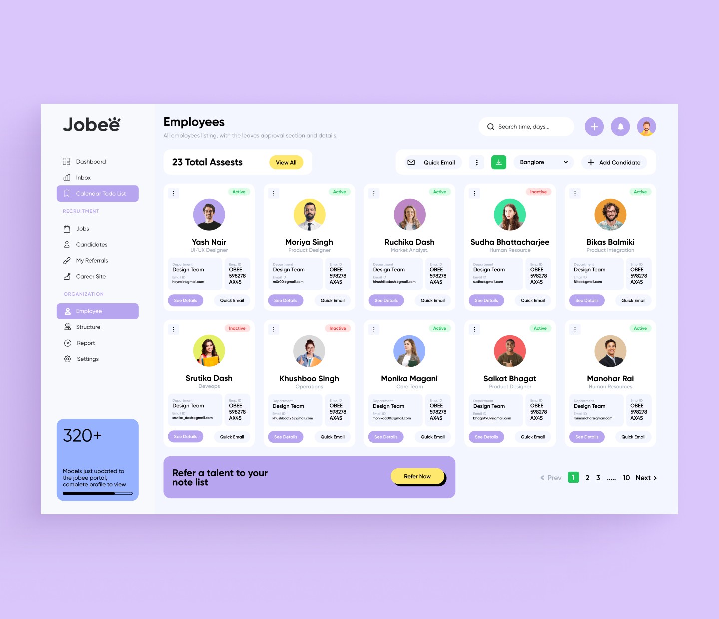 As the Designer for Jobee, I developed a user-centric HR management system that simplifies complex workflows while promoting productivity and collaboration. My role involved creating an intuitive interface with seamless navigation, ensuring HR teams can easily manage tasks like hiring, employee tracking, and communication. By focusing on functionality and user experience, I delivered a product that aligns with modern HR requirements.